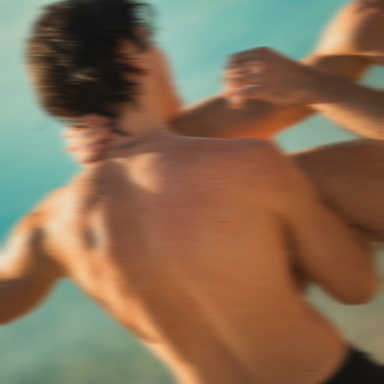 Two trained bodies, two breaths searching for each other in the ancient rhythm of movement, they are not truly fighting, they are listening.