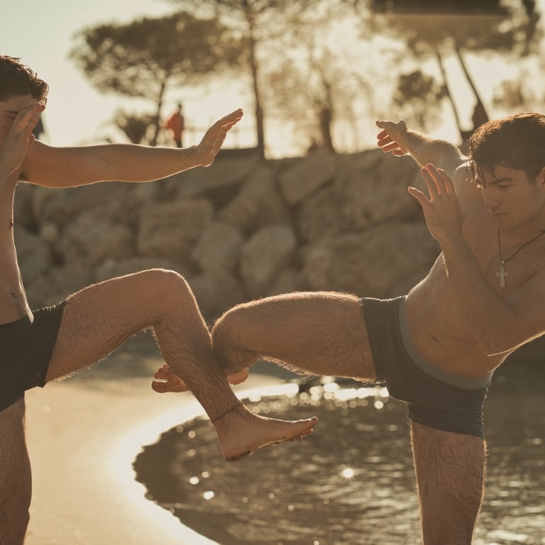 In this photo session there is more than sport, there is the silent dialogue of two young men raised in the language of martial arts, where the body becomes speech and silence is teaching.